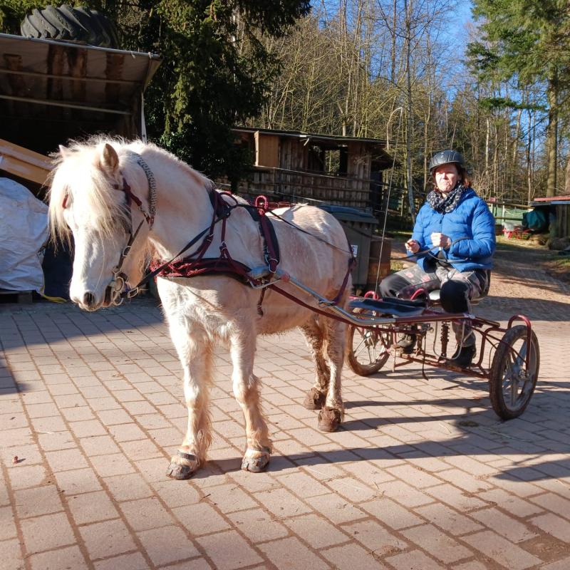 Manchmal ist er etwas schreckhaft: Regenschirme, Plastiktüten oder alles, was plötzlich flattert, findet er ziemlich unheimlich. Trotzdem ist er ein echtes Charakterpony mit viel Charme und Energie.