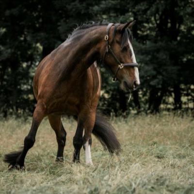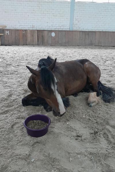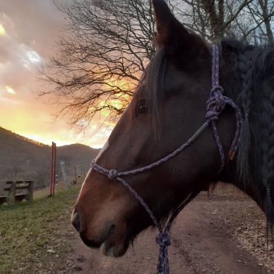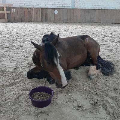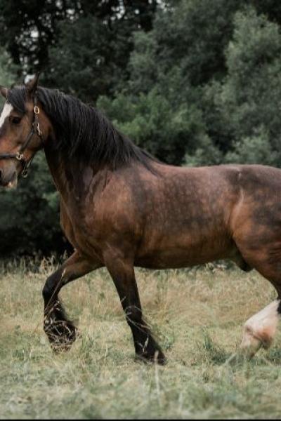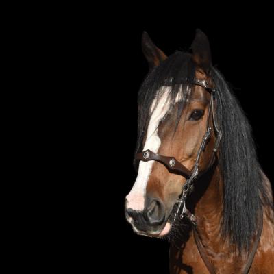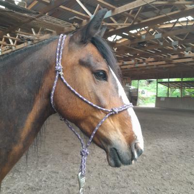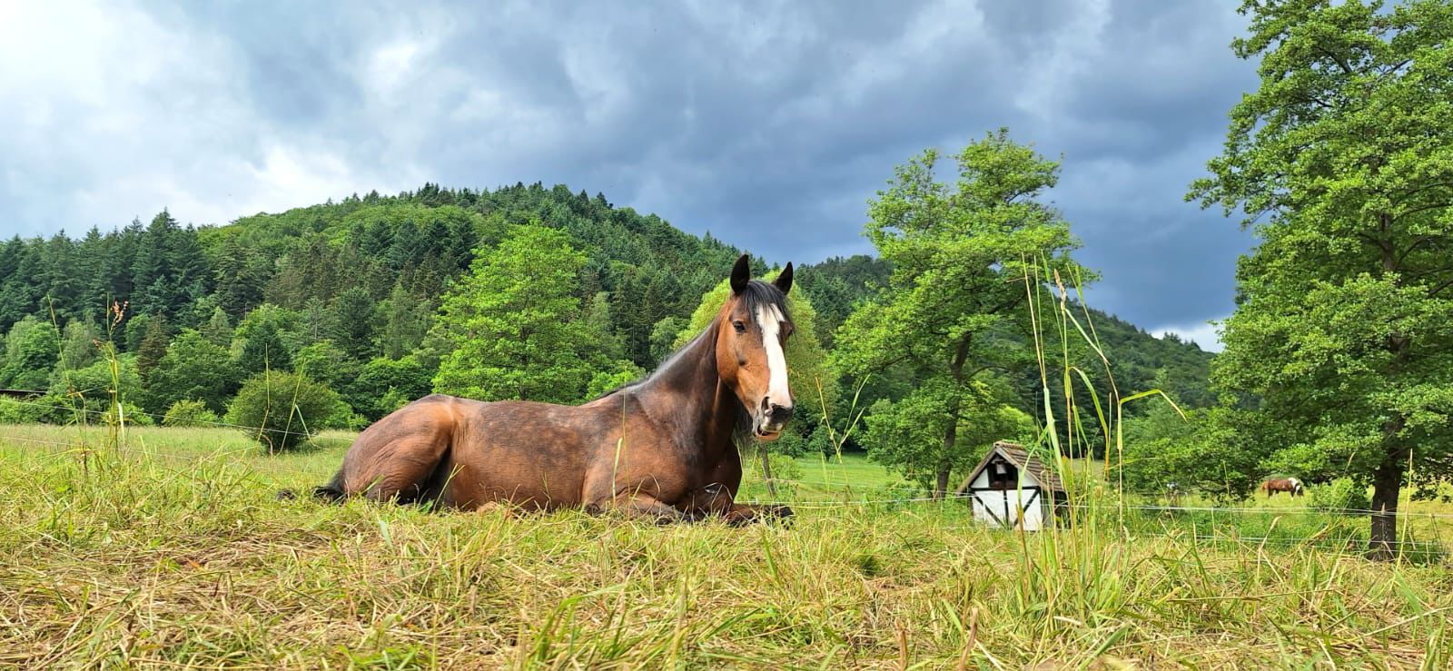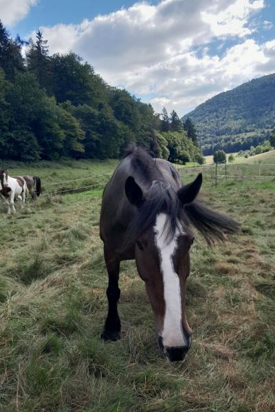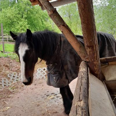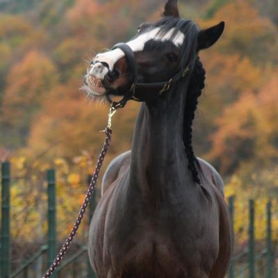 Das ist Brandy. Er ist ein Tinker-Mix, 15 Jahre alt, hat ein braunes Fell und ist ein Wallach.