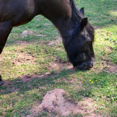 Das ist Monty, eigentlich heißt er Drybarrows Jonty und ist ein 30-jähriges Fellpony mit tiefschwarzem Fell – ein echter Rappe.