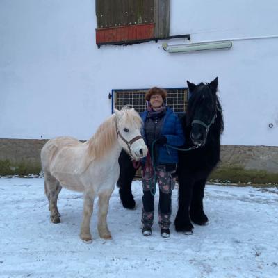 Man erkennt ihn sofort an seiner schwarzen Farbe, der üppigen Mähne, dem vollen Schweif und seinem typischen Fesselbehang. Im Winter wird er besonders flauschig und kuschelig.