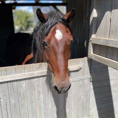 Sie ist eine Welsh-Cob-Stute und bereits 26 Jahre alt. Unverwechselbar ist sie durch den schönen Stern auf ihrer Stirn, der ihr einen ganz besonderen Ausdruck verleiht.