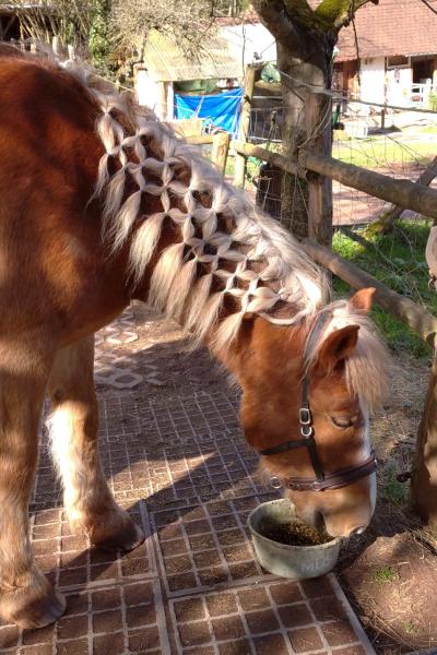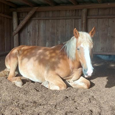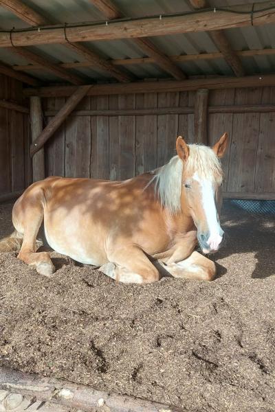 Was er allerdings gar nicht mag, ist das Geputzt werden, Deckenanziehen oder allzu viel Anfassen – da kann er durchaus auch mal etwas grantig reagieren. Doch sobald man im Sattel sitzt, zeigt er seine andere Seite: zuverlässig, geduldig und sicher trägt er auch Anfänger ruhig durch den Wald.