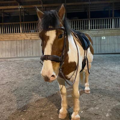 Er ist ein litauisches Kaltblut, geboren am 16. Januar 2009, und bringt bei einem Stockmaß von 1,62 m eine eindrucksvolle Erscheinung mit. Sein Fell ist eine wunderschöne Scheckung, die ihn schon auf den ersten Blick unverwechselbar macht.