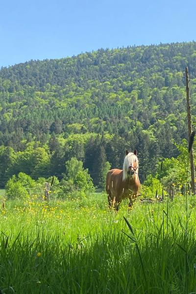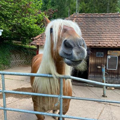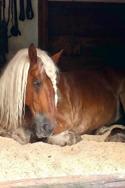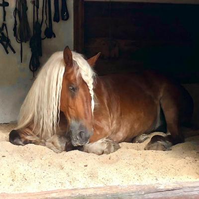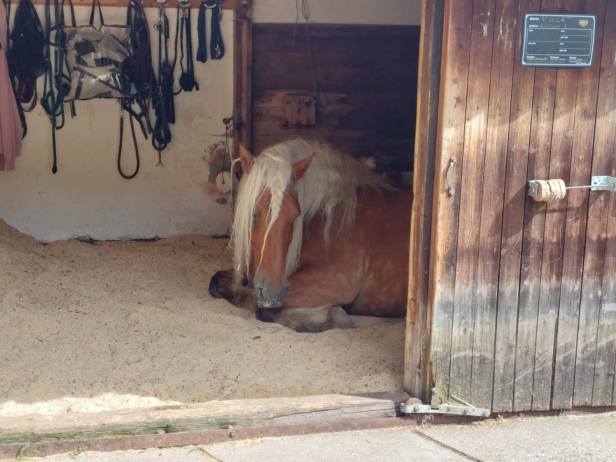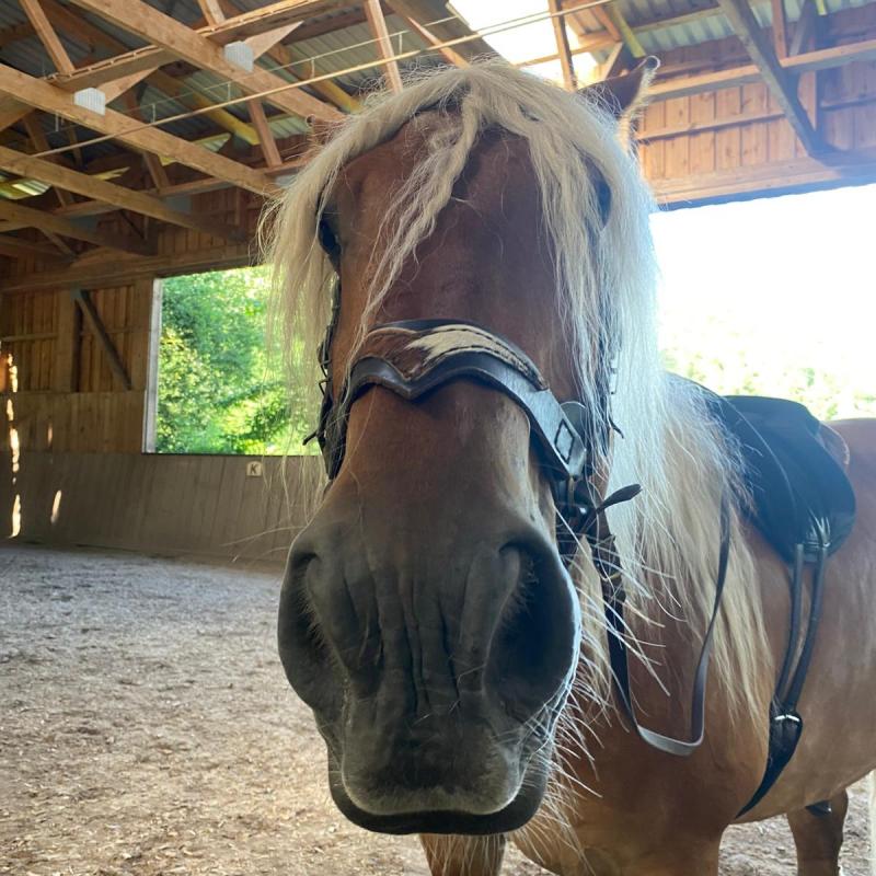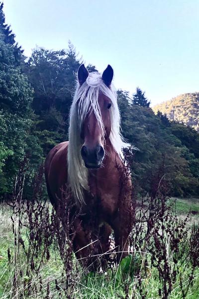 Valet ist eine Seele an Pferd, absolut ausgeglichen und zuverlässig. Selbst die kleinsten Kinder lieben ihn. Wenn ihm etwas nicht passt, bleibt er stehen.