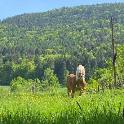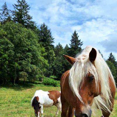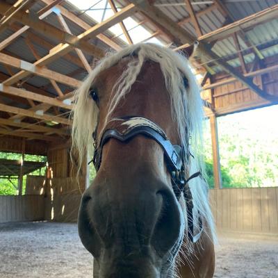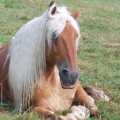 Er ist ein Comtoise, also ein französisches Kaltblut, geboren am 14. Juli 2009. Mit seinem beeindruckenden Stockmaß von 1,68 m ist er ein richtig stattlicher Kerl. Sein Fell leuchtet in einem warmen Fuchs-Ton zudem ist er mit seiner langen hellen Mähne und dem vollen Schweif schon von weitem ein Blickfang.